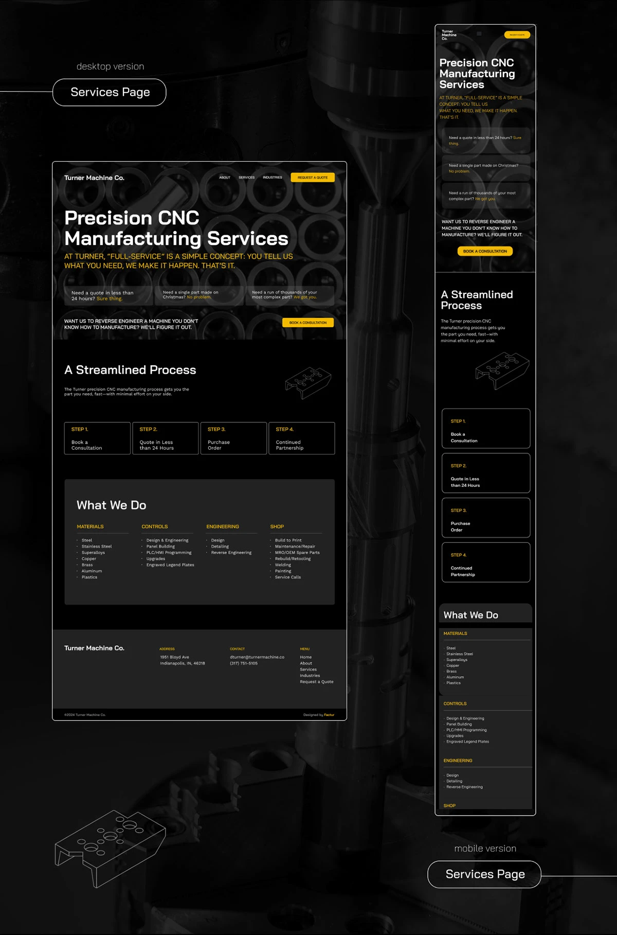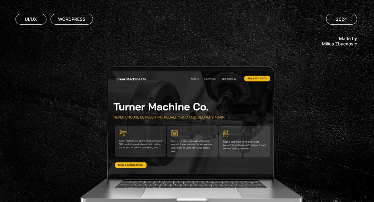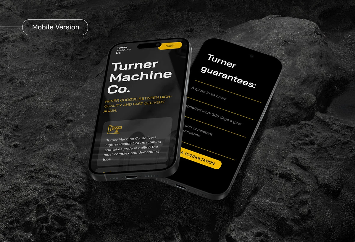 Professional Web Design and WordPress development for Turner Machine. Crafted in Figma and Elementor for responsive, modern websites.